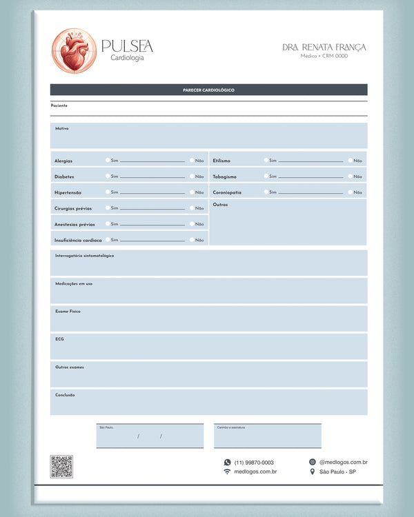 A ficha de parecer cardiológico é impressa em papel offset paperfect® com 90g/m². Disponível no formato A4.