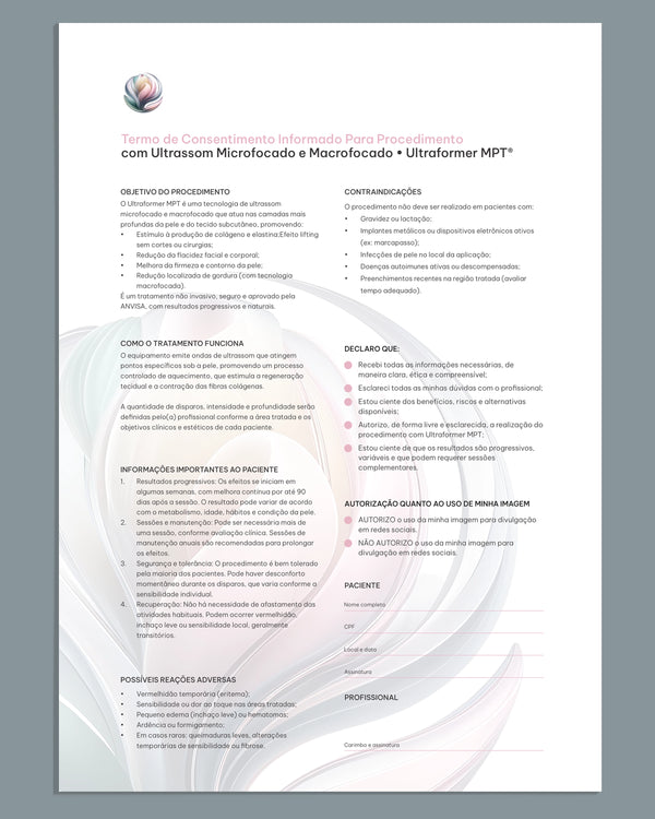A ficha clínica de Ultraformer MPT é impressa em papel offset paperfect® com 90g/m².