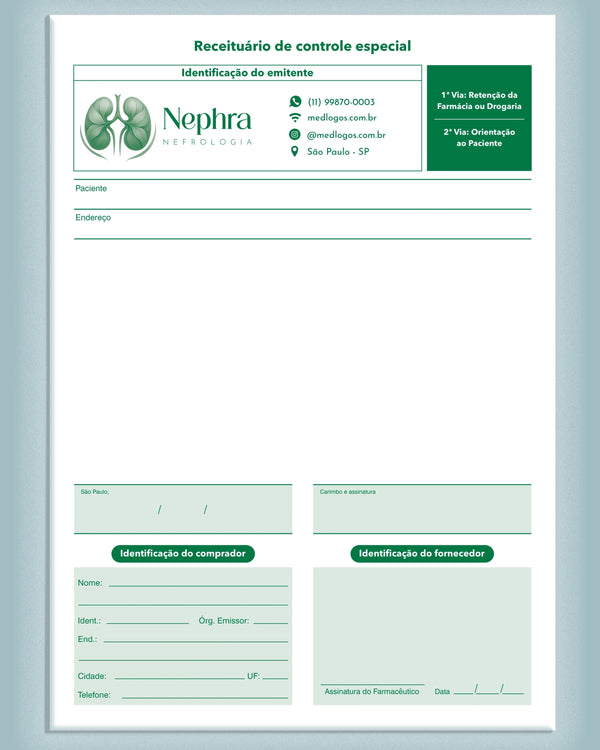 Os receituários médicos de controle especial são Impressos em papel carbonado autocopiativo, garantindo que a segunda via da prescrição seja automaticamente registrada com clareza, sem a necessidade de carbono solto. A impressão é feita em monocromia (tons únicos), garantindo contraste técnico e durabilidade da informação.