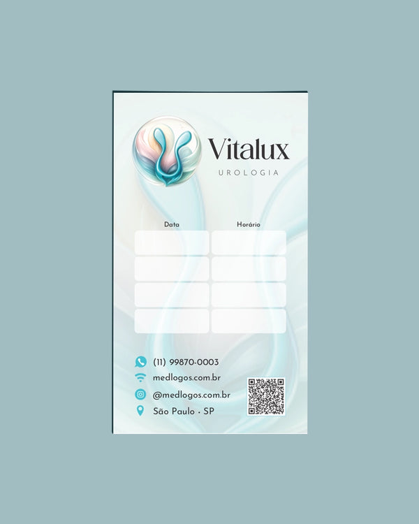 O cartão de próxima consulta médica é impresso em papel offset MedFiber® com 240g/m². Disponível no formato 9x5cm.