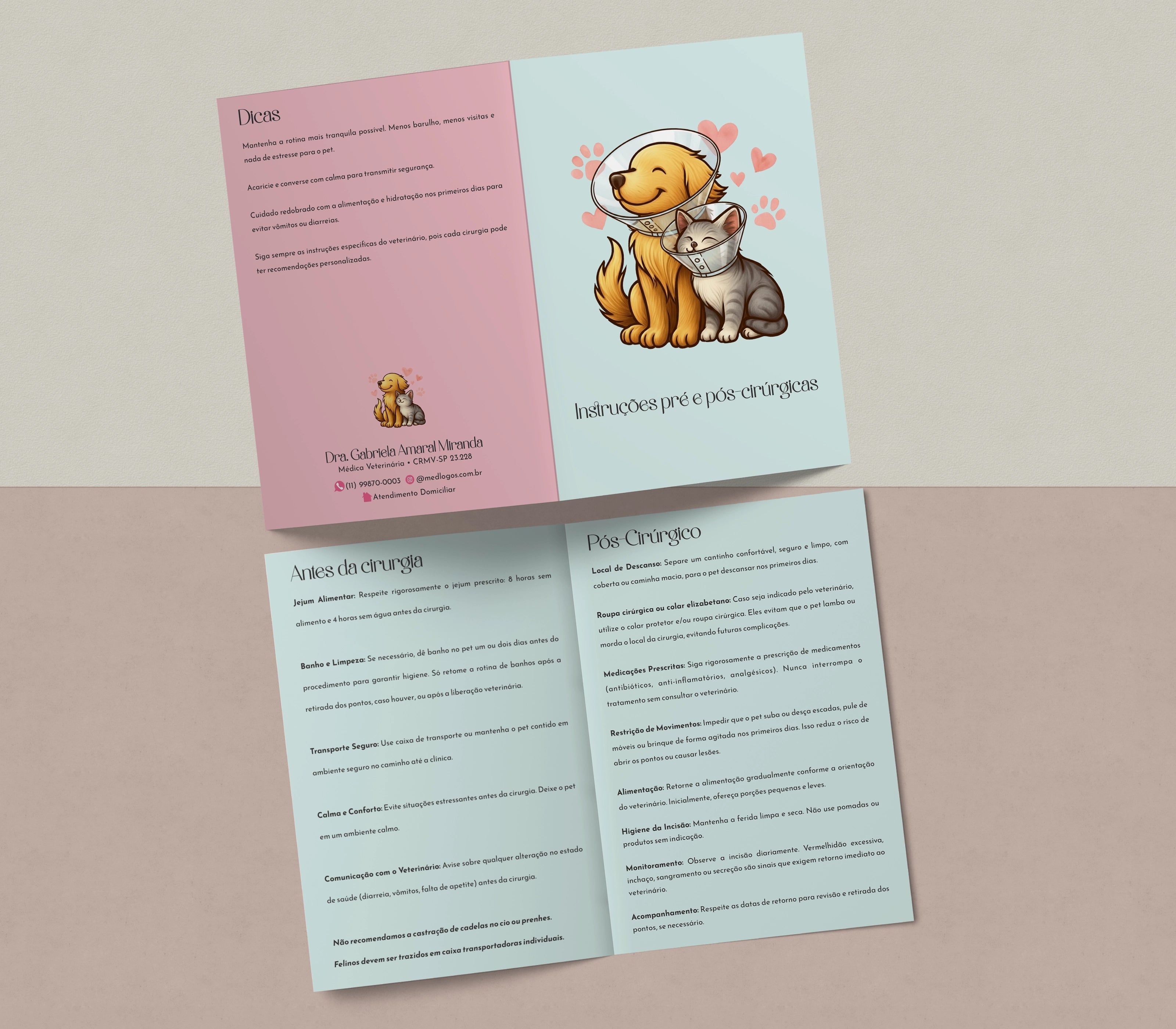 Caderneta de Instruções pré e pós-cirurgicas veterinária