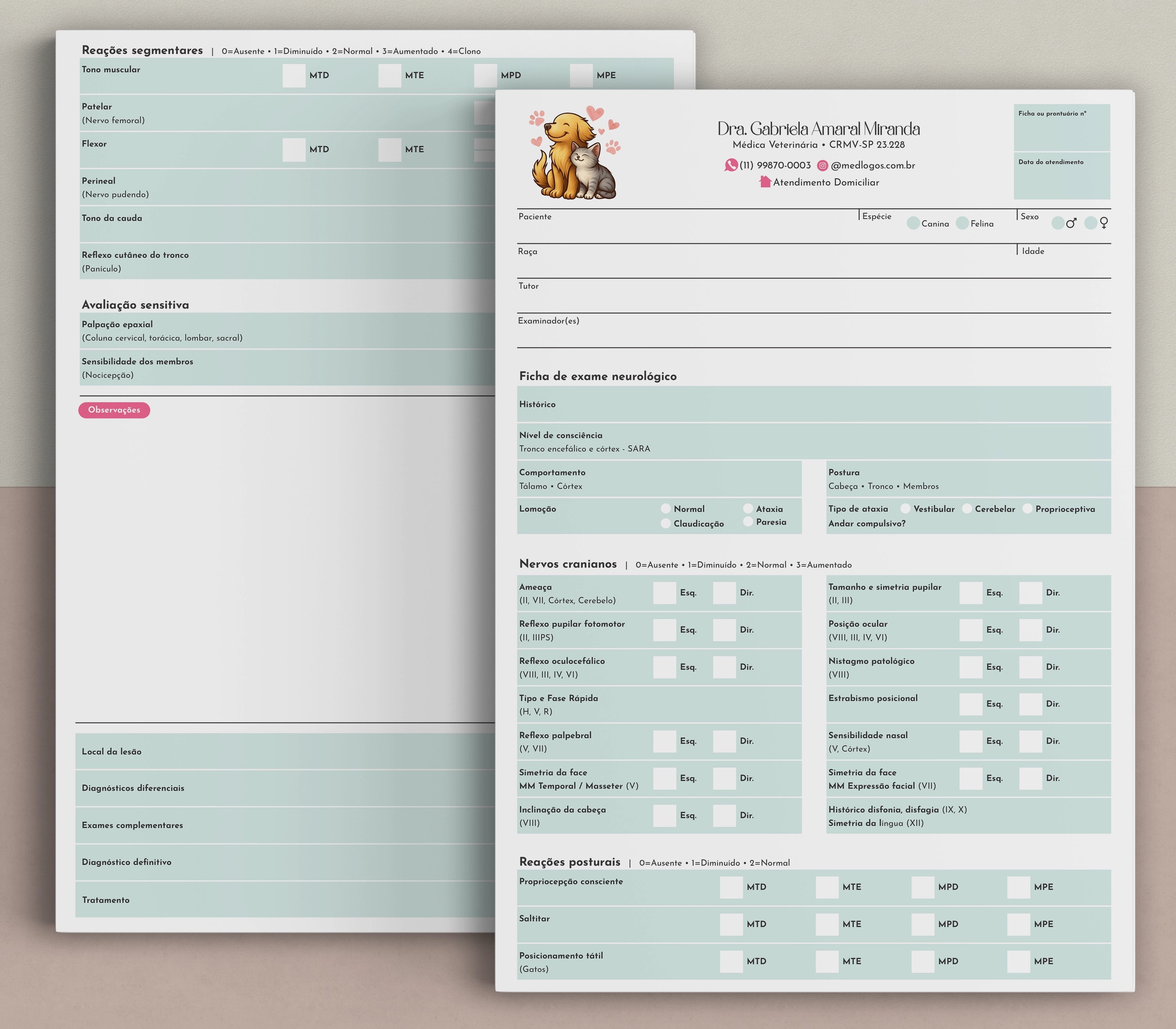 Ficha de Exame Neurológico Veterinário - Avaliação de Reflexos e Postura