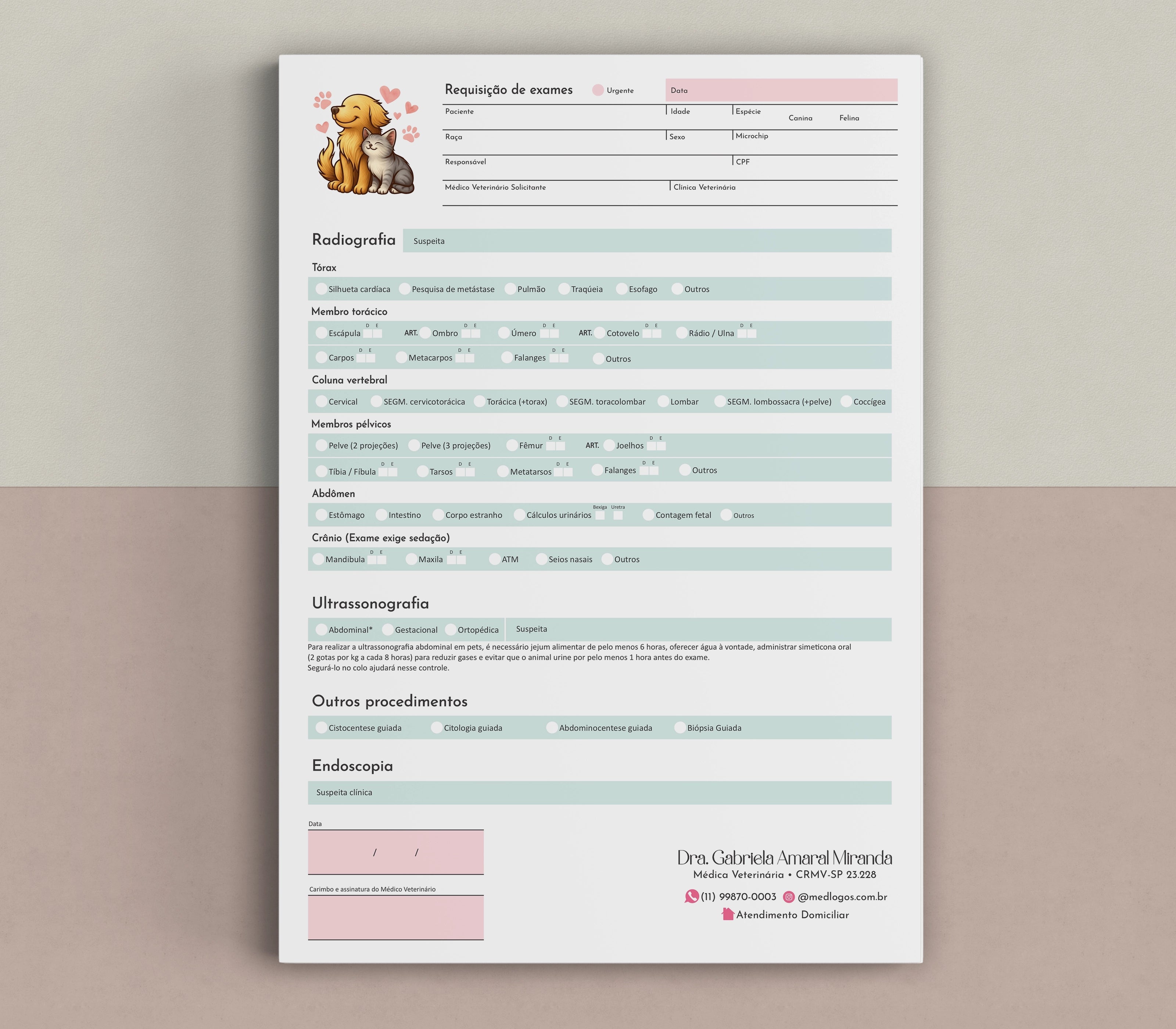 Requisição de Exames de Imagem Veterinária - Raio-X, Ultrassom e Endoscopia
