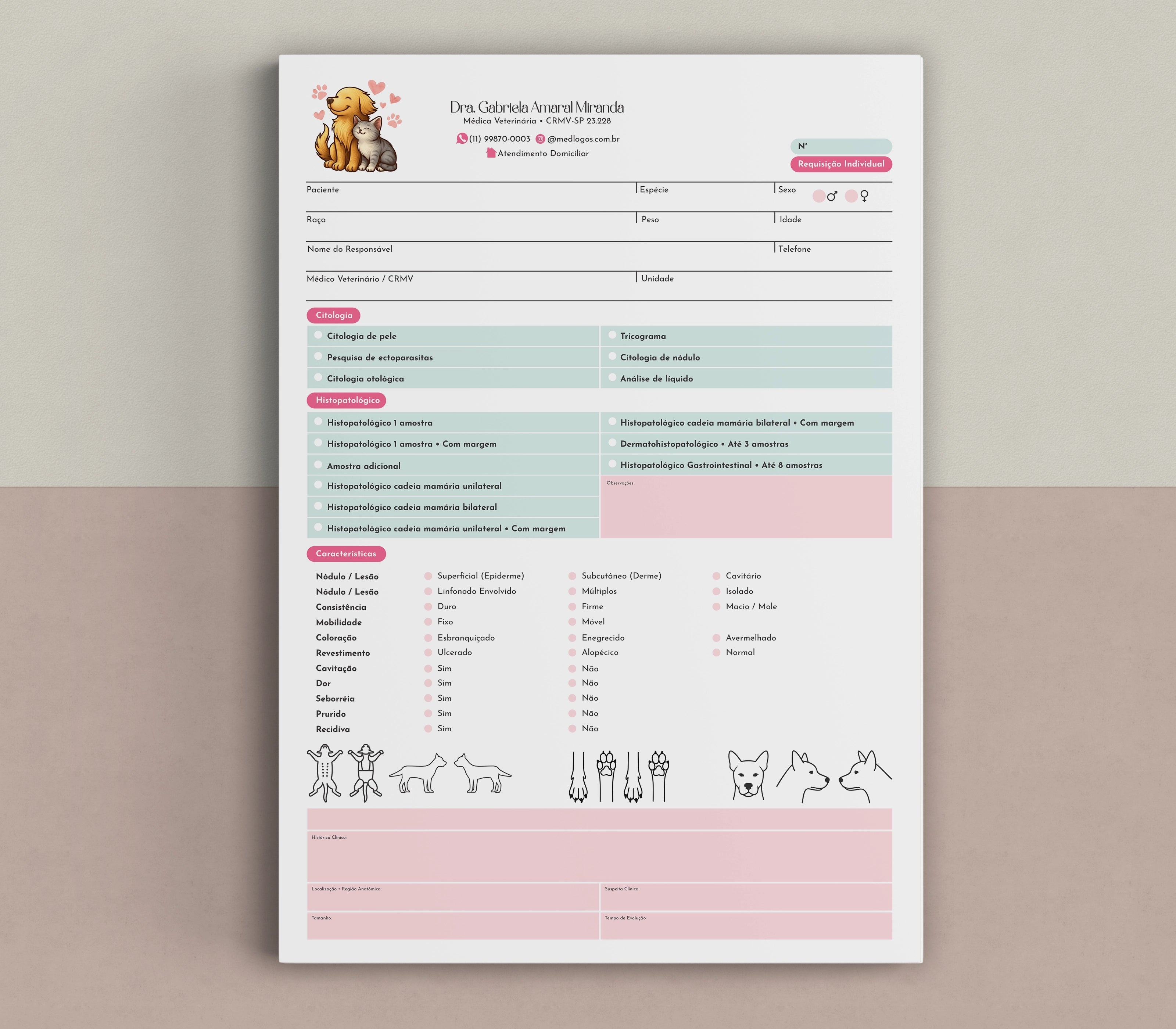 A requisição de exames de citologia e histopatologia veterinária é impressa em formato A4 (21 x 29,7 cm), com papel offset Paperfect® 90g/m² de alta alvura, opacidade e excelente desempenho em impressoras.