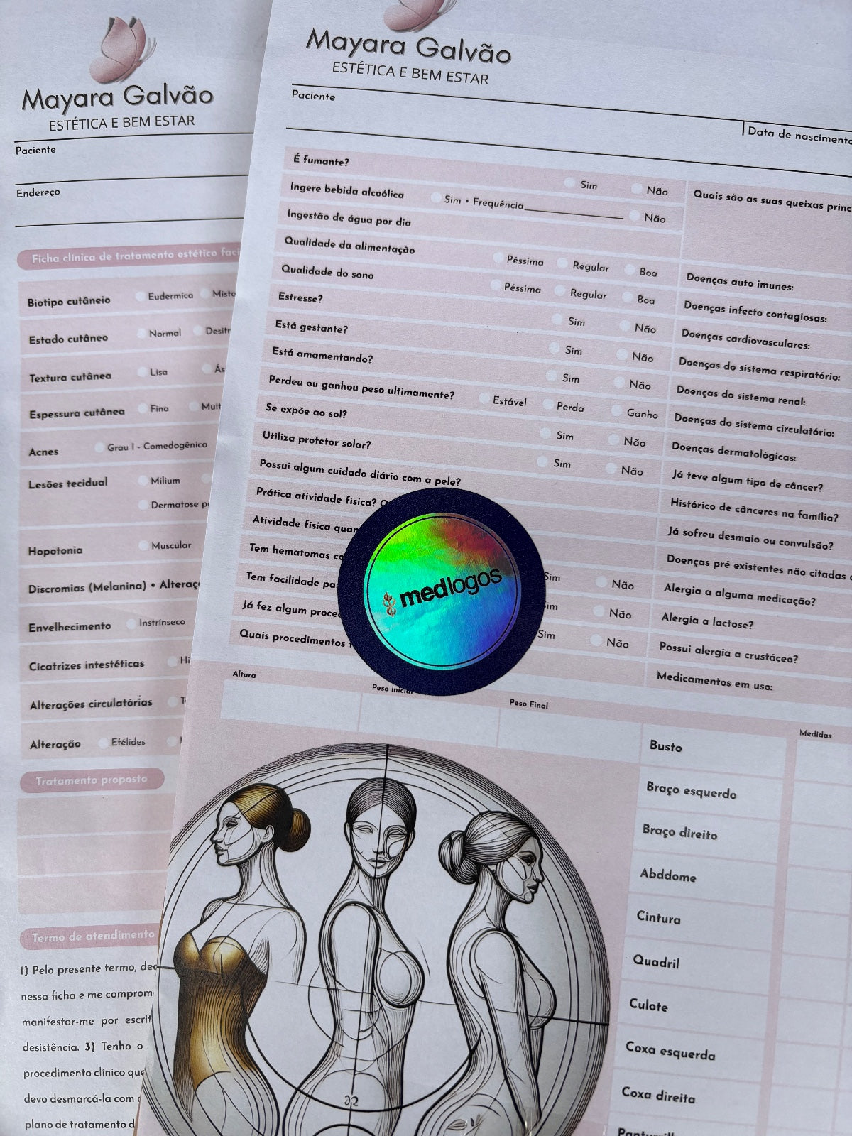A anamnese estética facial e corporal, com verso com plano de tratamento, pagamento e consentimento é impressa em papel offset paperfect® com 90g/m².