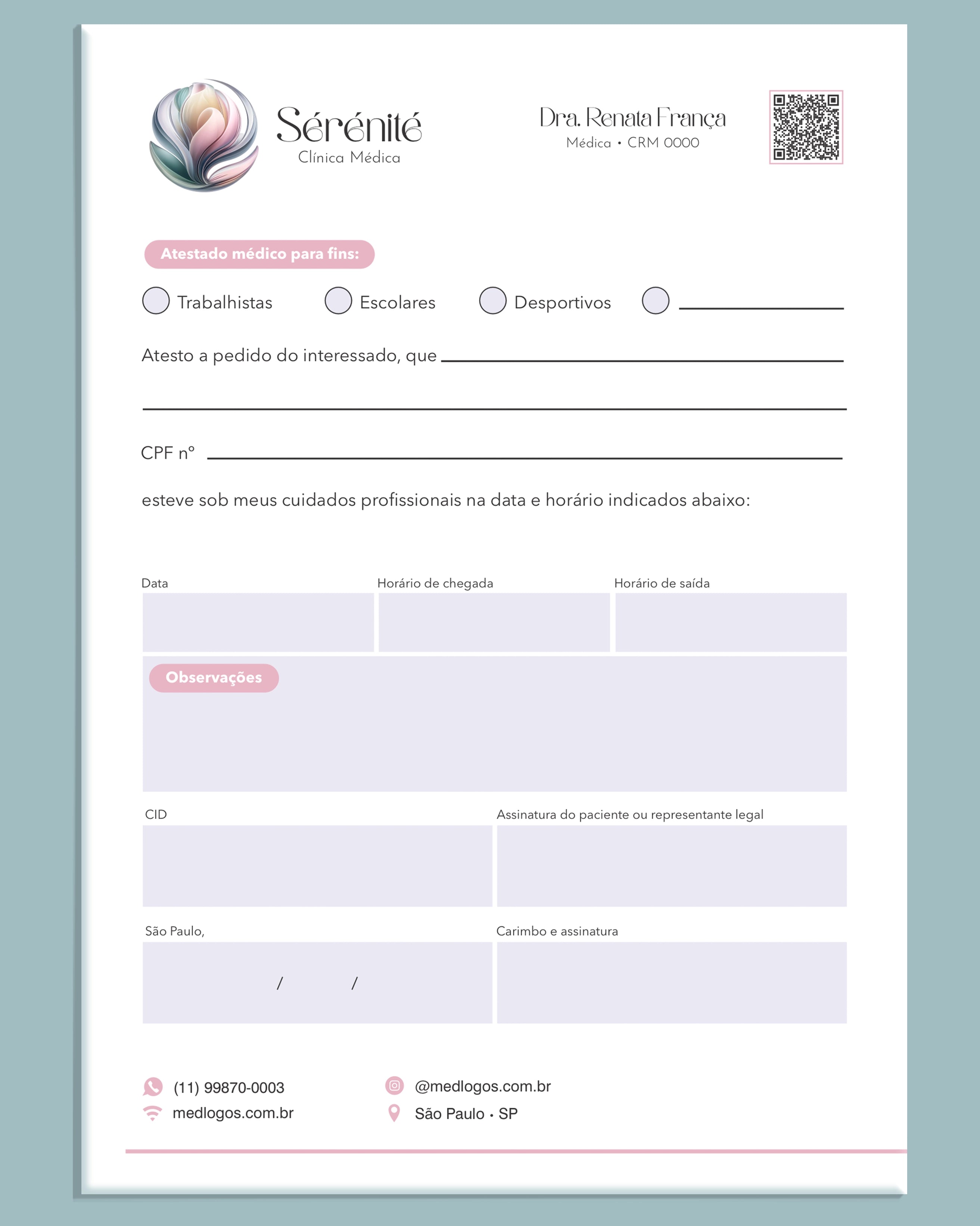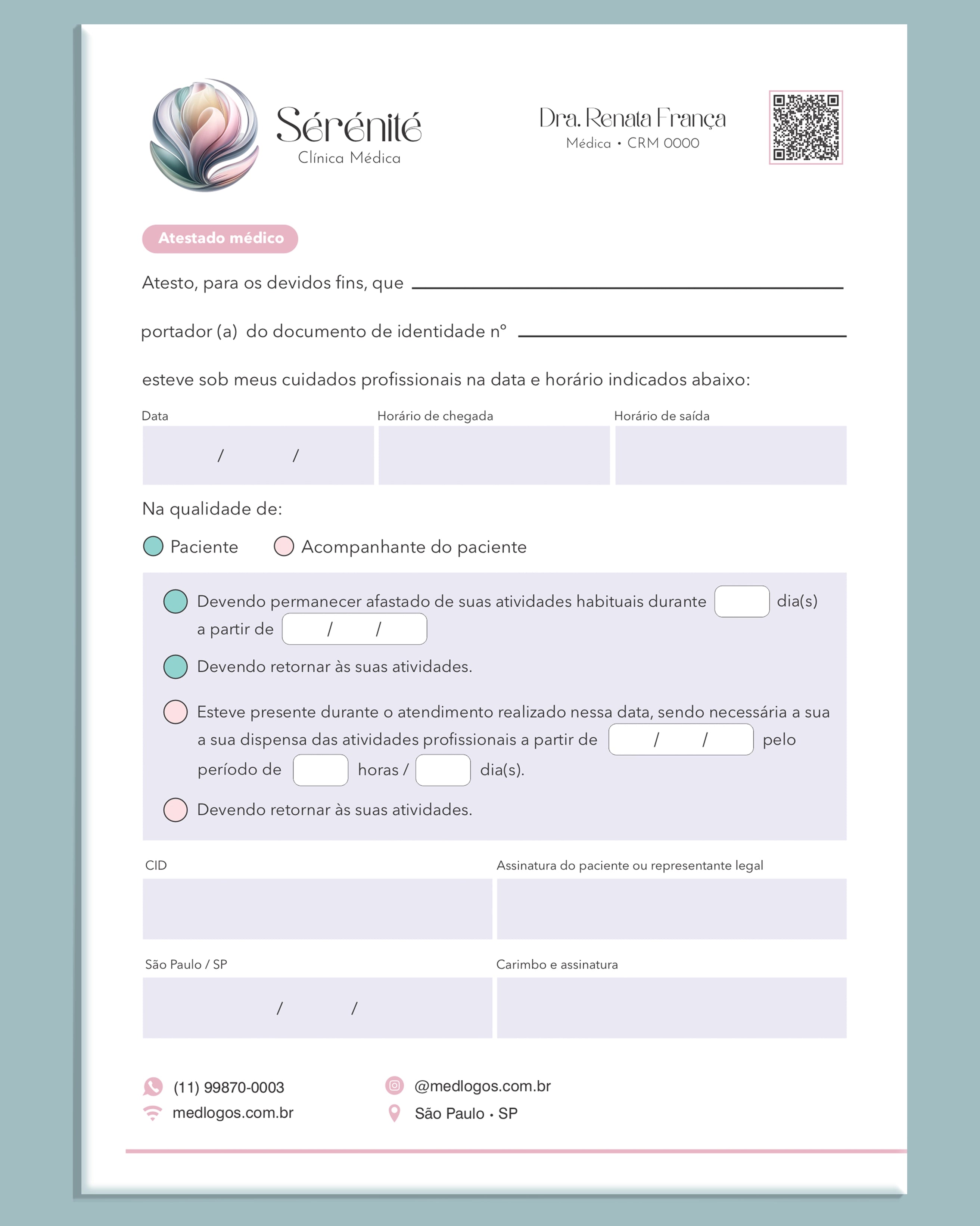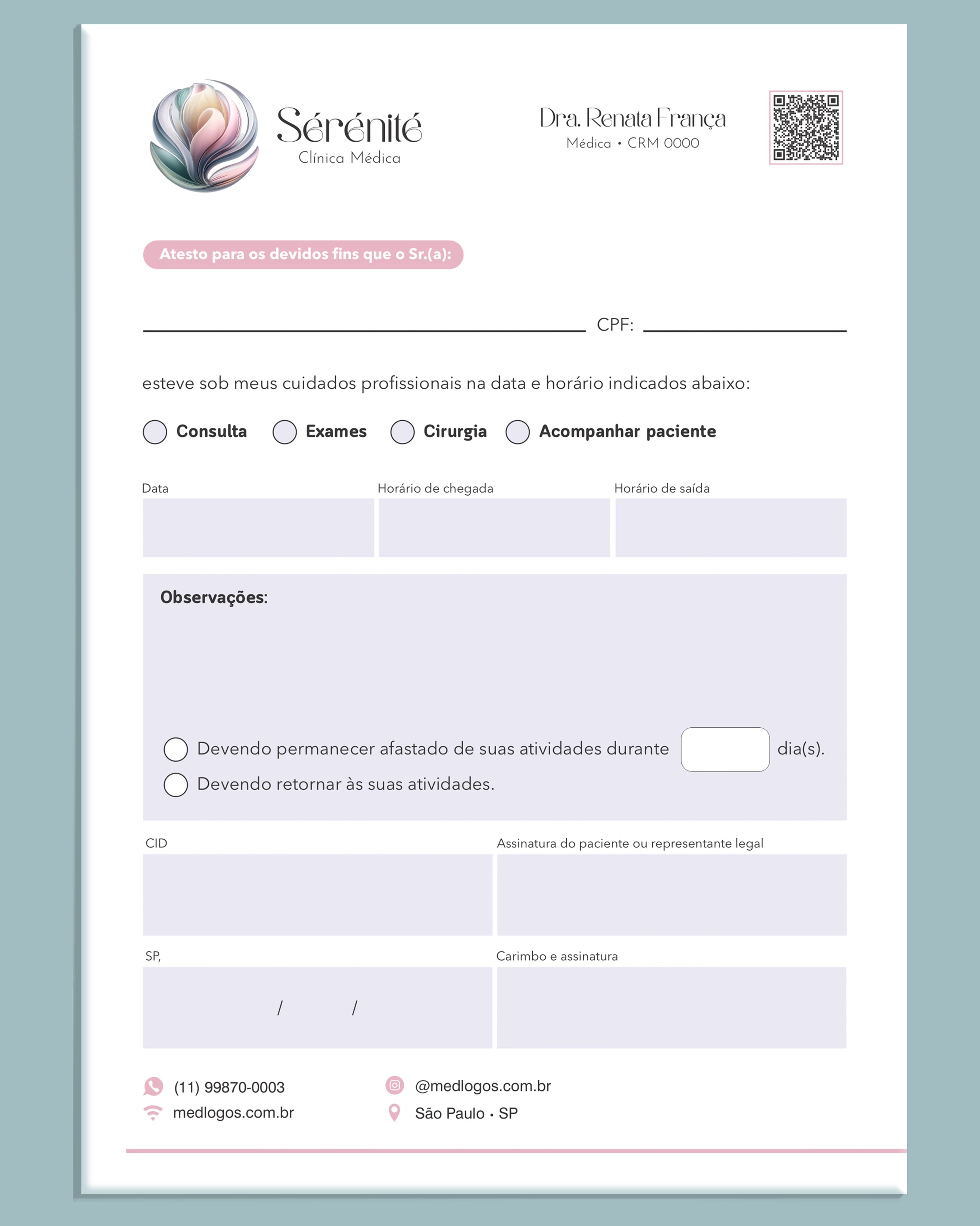 O atestado médico é impresso em papel offset paperfect® com 90g/m². Disponível no formato A5 (14,8 x 21cm).