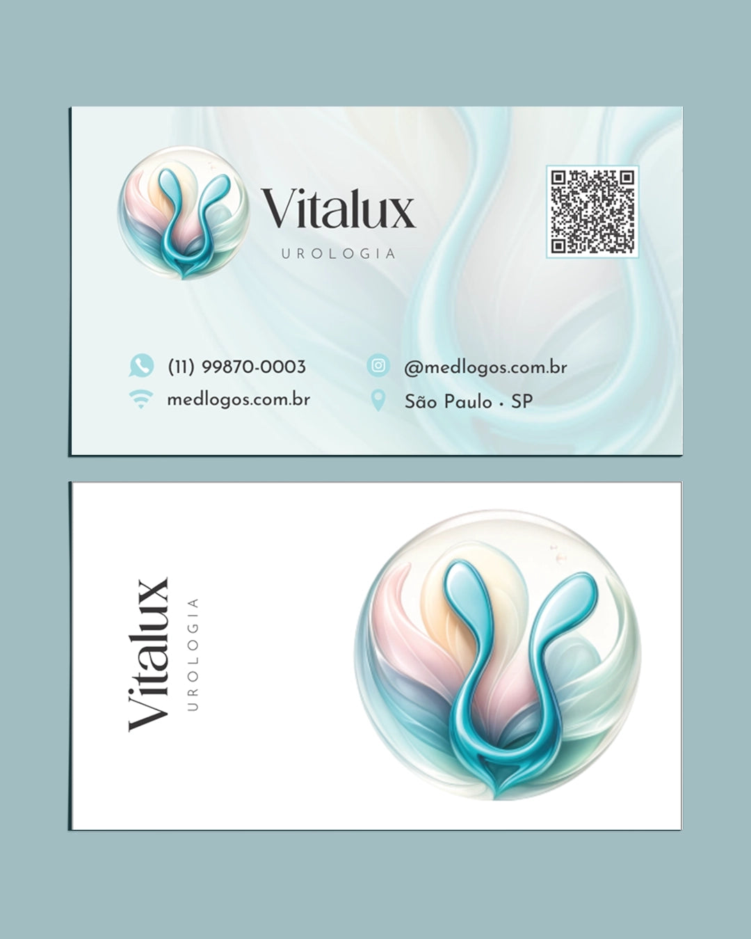 O cartão de visita premium para medicina é impresso em papel Couché Press® com 300g/m². Formato: 8,8x4,8cm