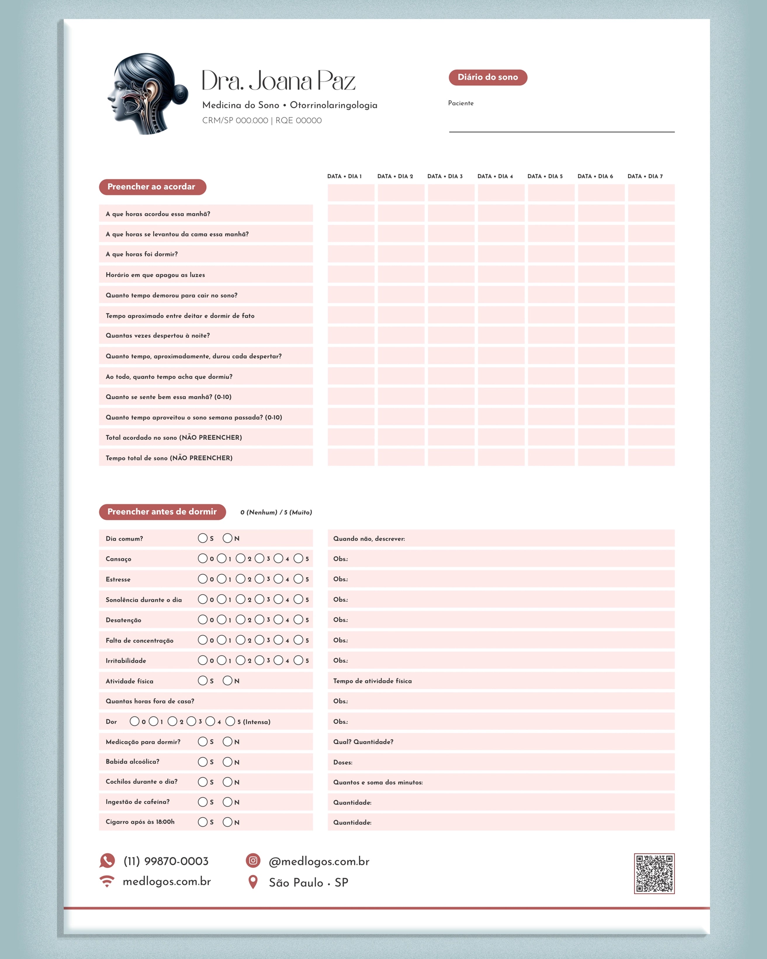 O diário do sono para Medicina do Sono é impresso em papel offset paperfect® com 90g/m². Disponível no formato A4.