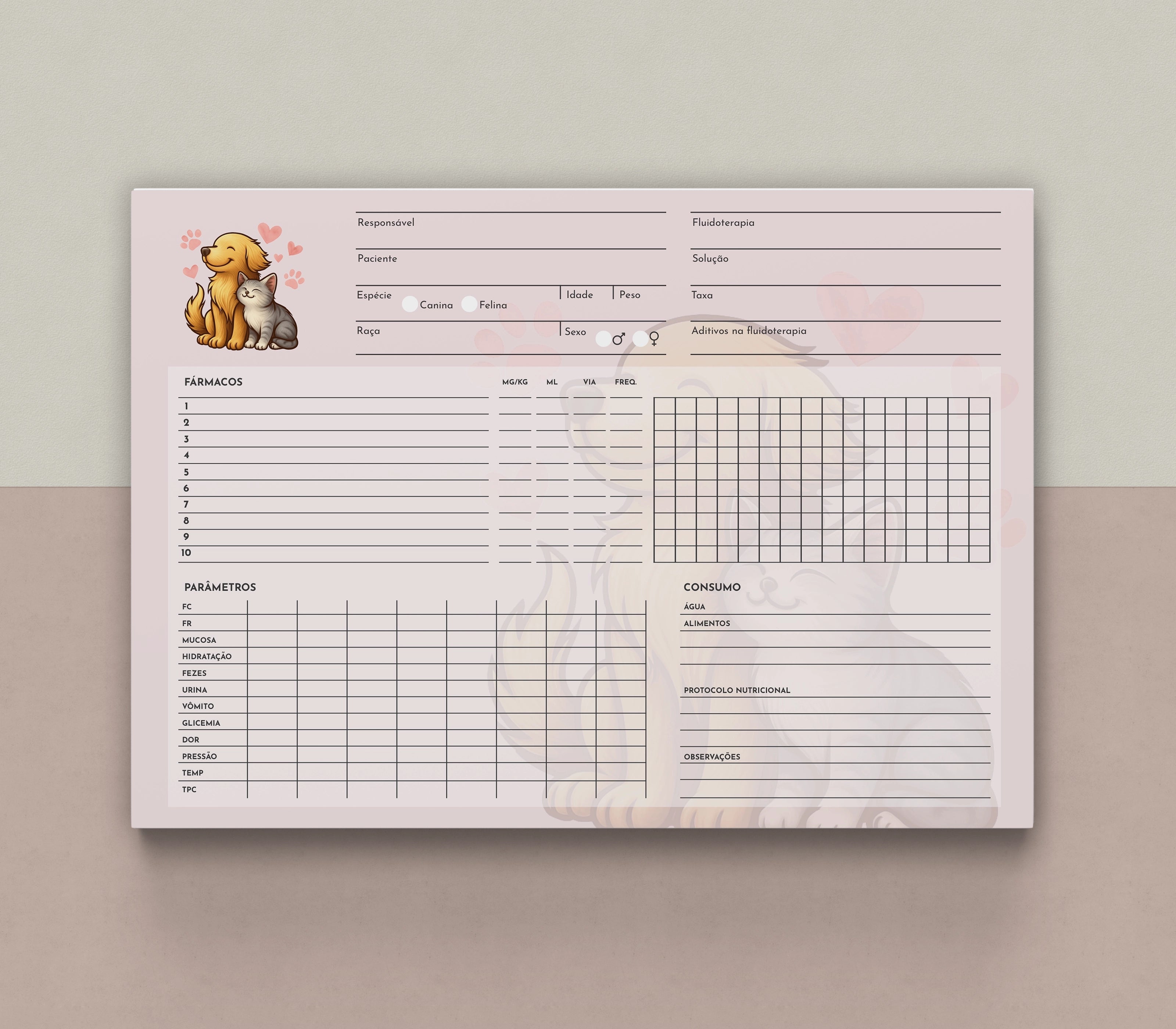 A ficha de internação veterinária é impressa em Paperfect® 90g/m², um papel offset de alta lisura e nitidez, ideal para escrita clara e apresentação profissional. Disponível no formato A5, são blocados com 100 folhas, com acabamento limpo e corte preciso — perfeitos para rotinas clínicas que exigem praticidade, organização e boa leitura.